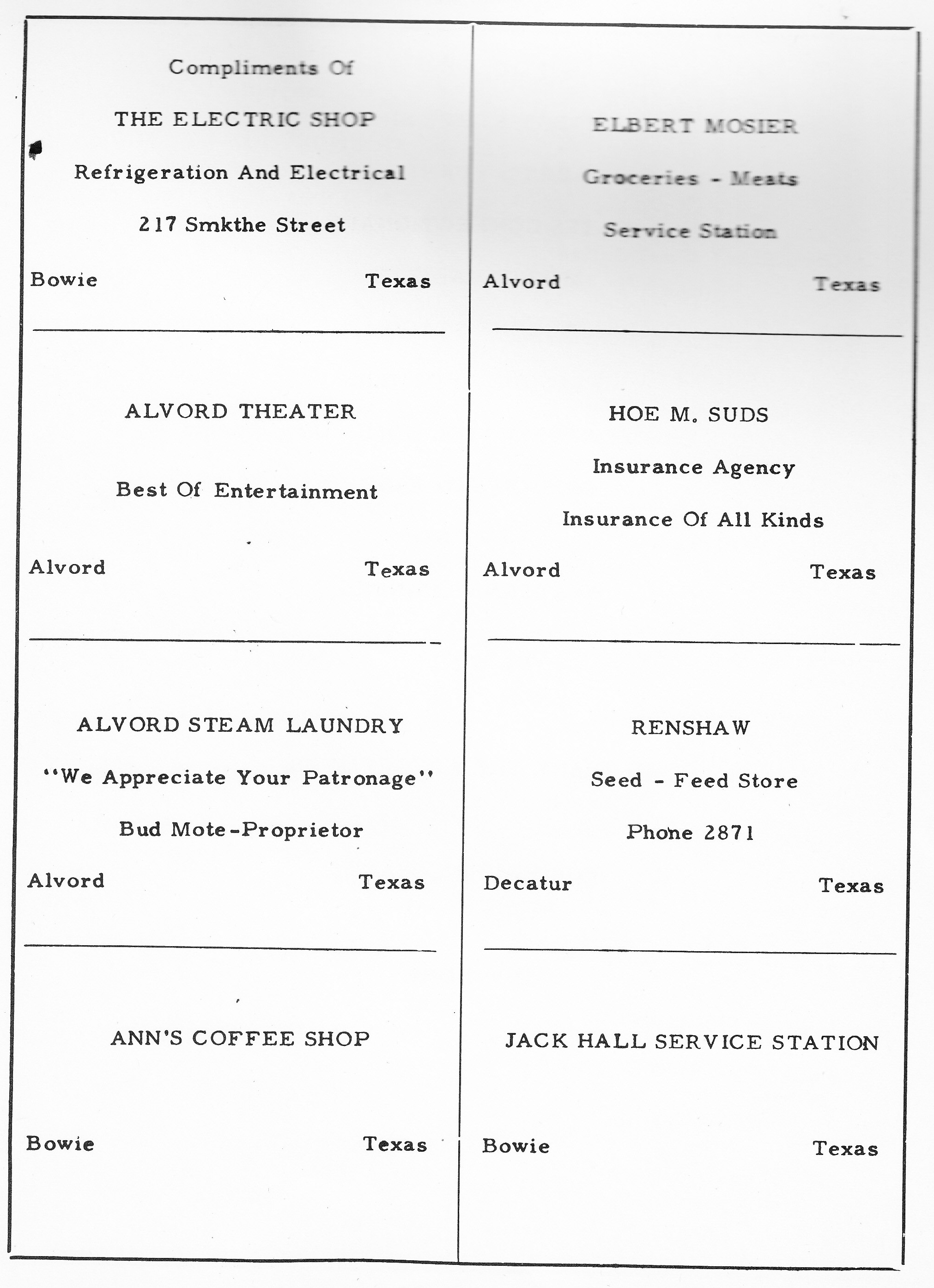 Tinney 1960 Alvord Advertisement