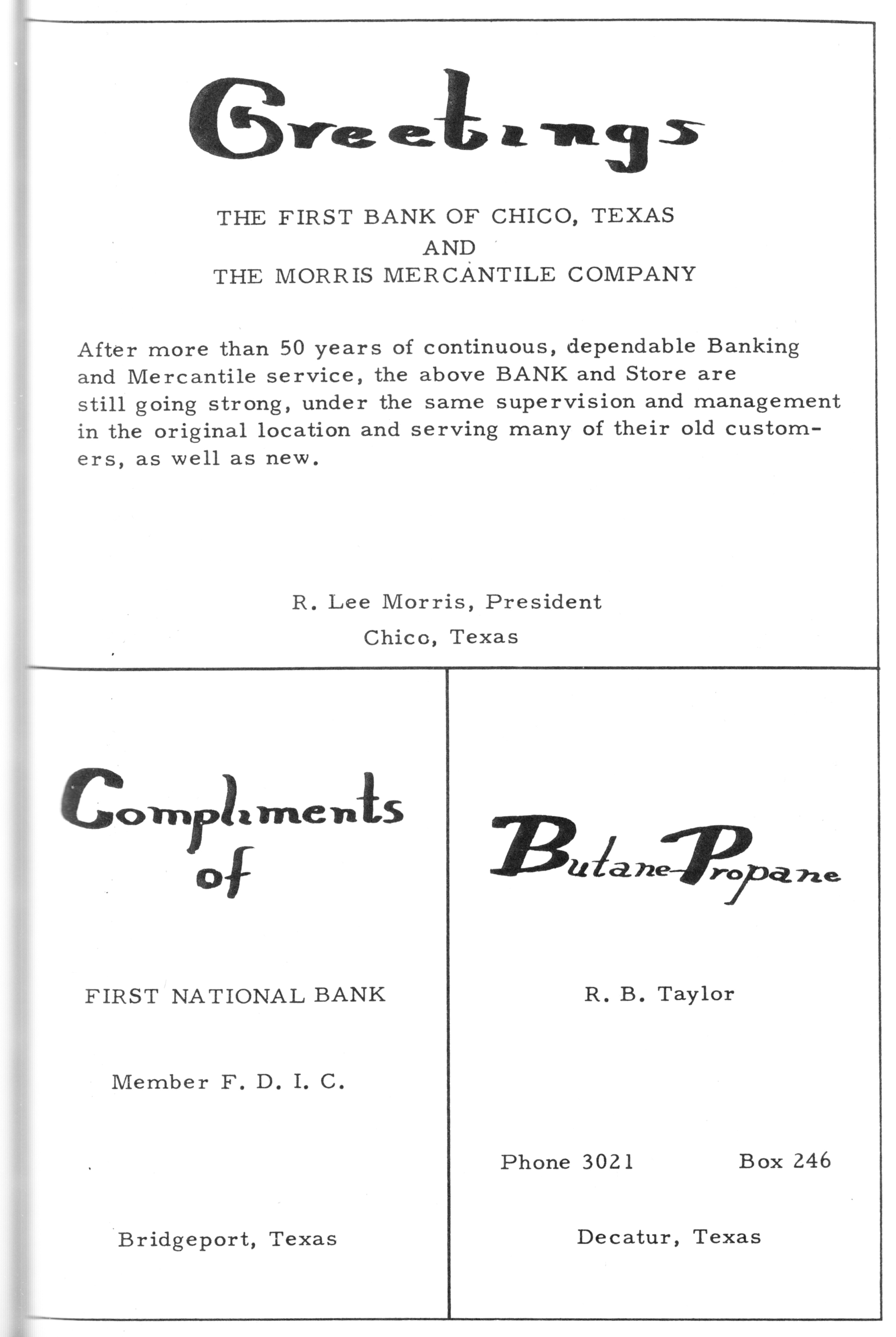 R. Lee Morris 1958 CHS Advertisement