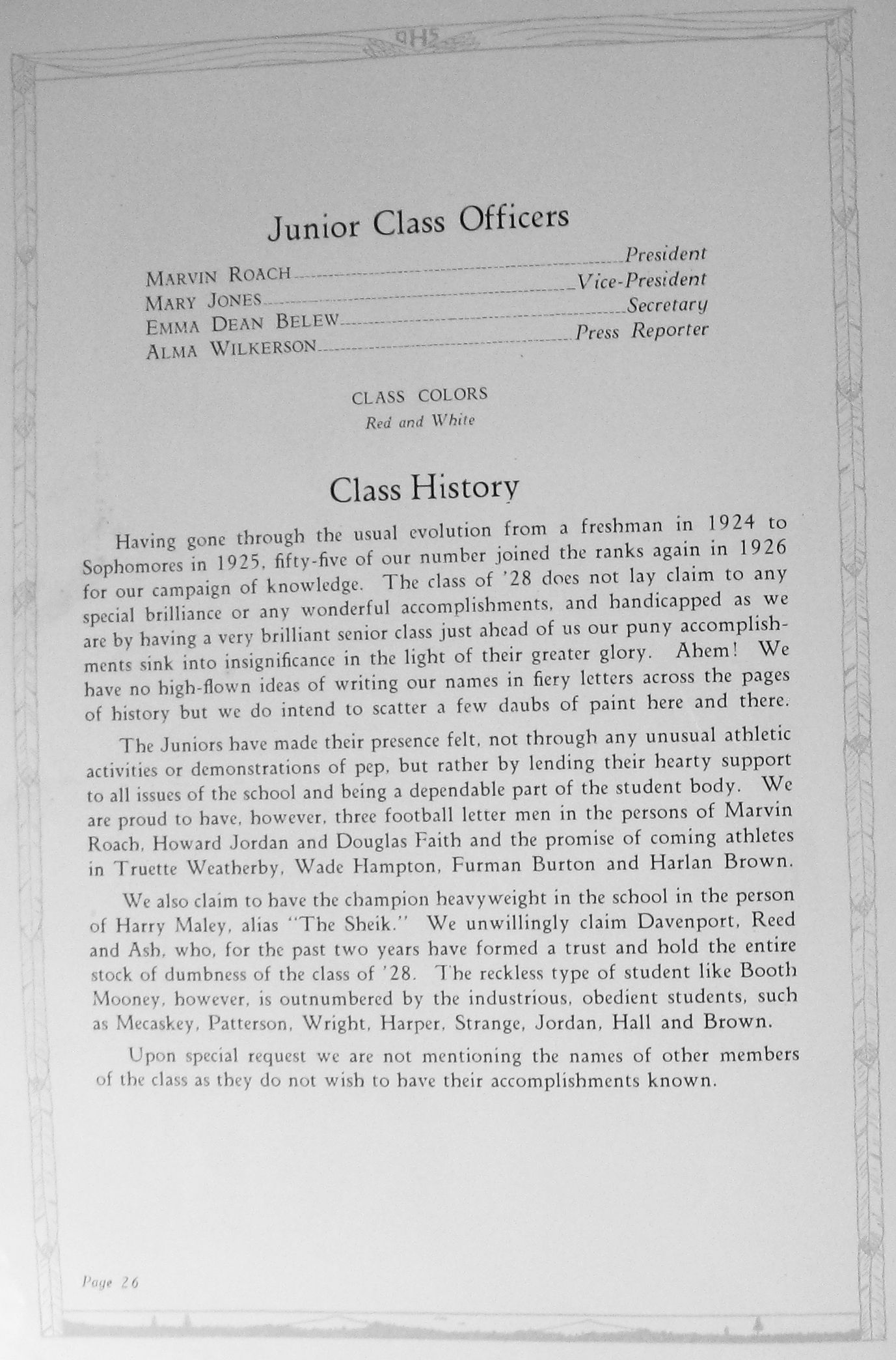 Davenport, Orlena 1927 DHS O.F.F. Club Picture