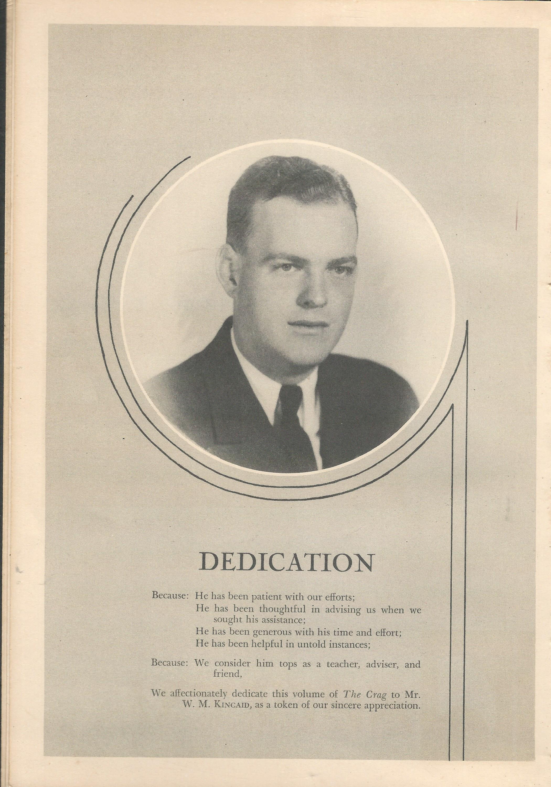 Kincaid, W. M. 1939 DHS Dedication Page