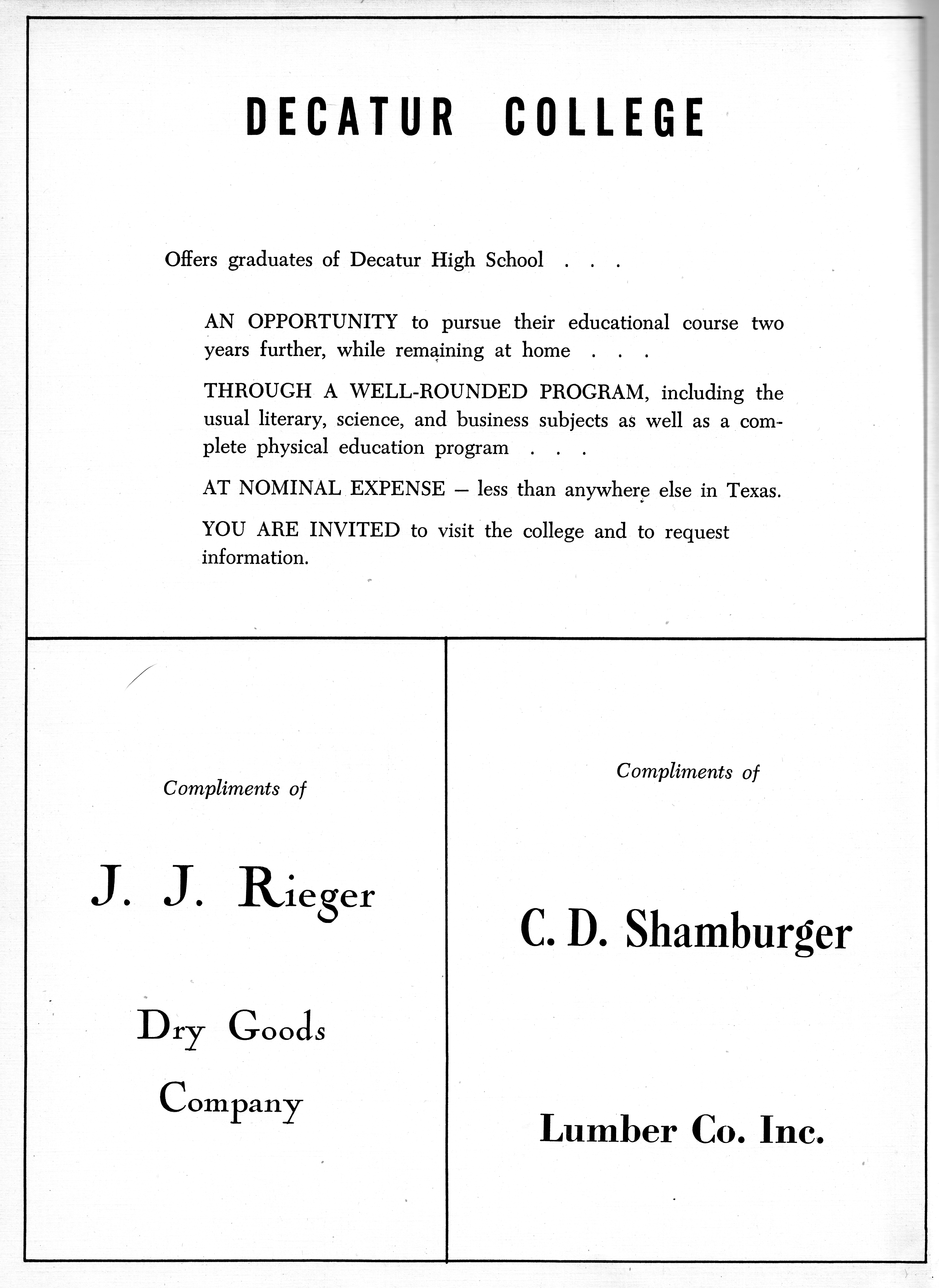 Decatur College / Picture 1946 DHS Advertisement