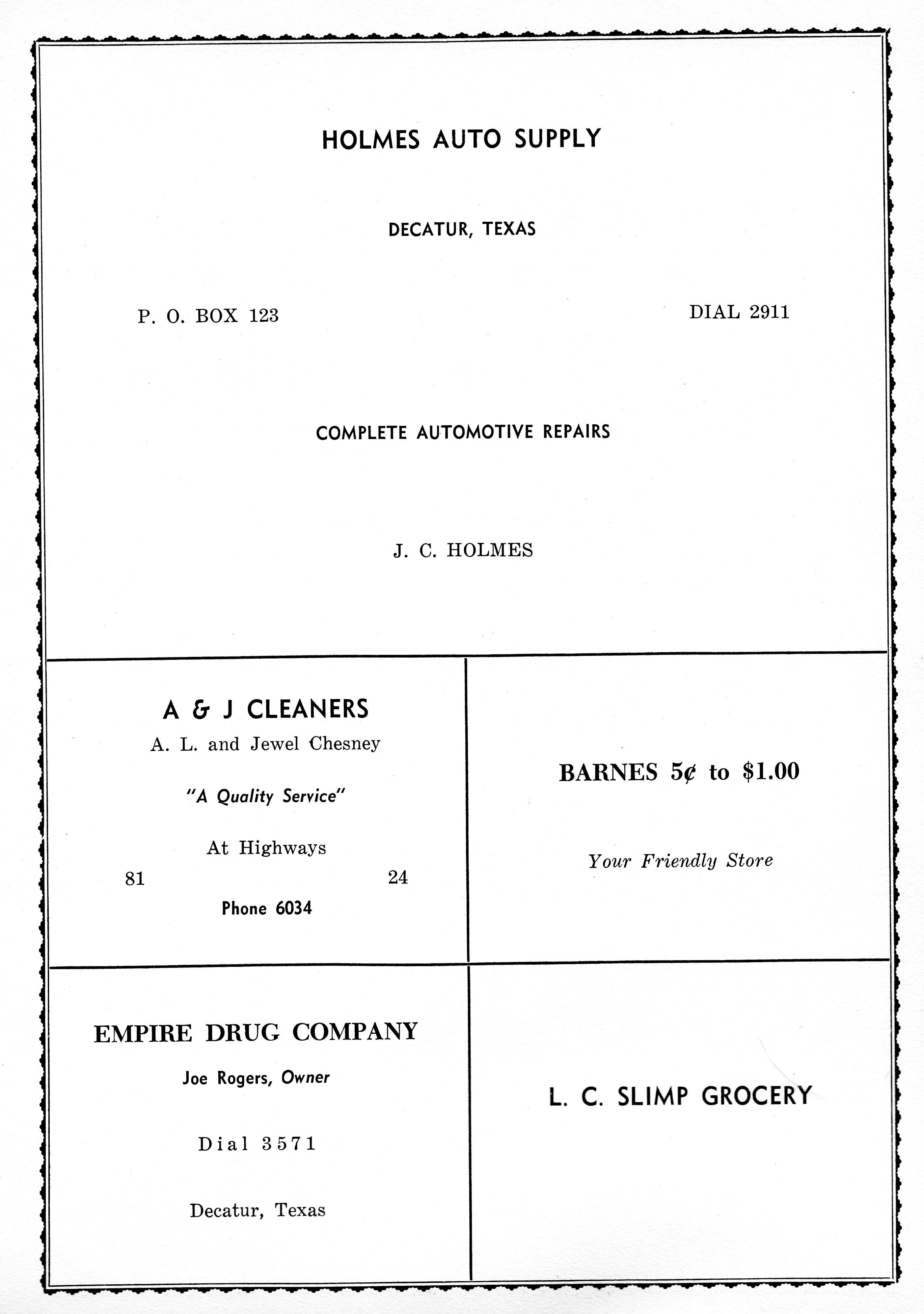 Decatur Cleaner & Laundry 1953 DHS Advertisement