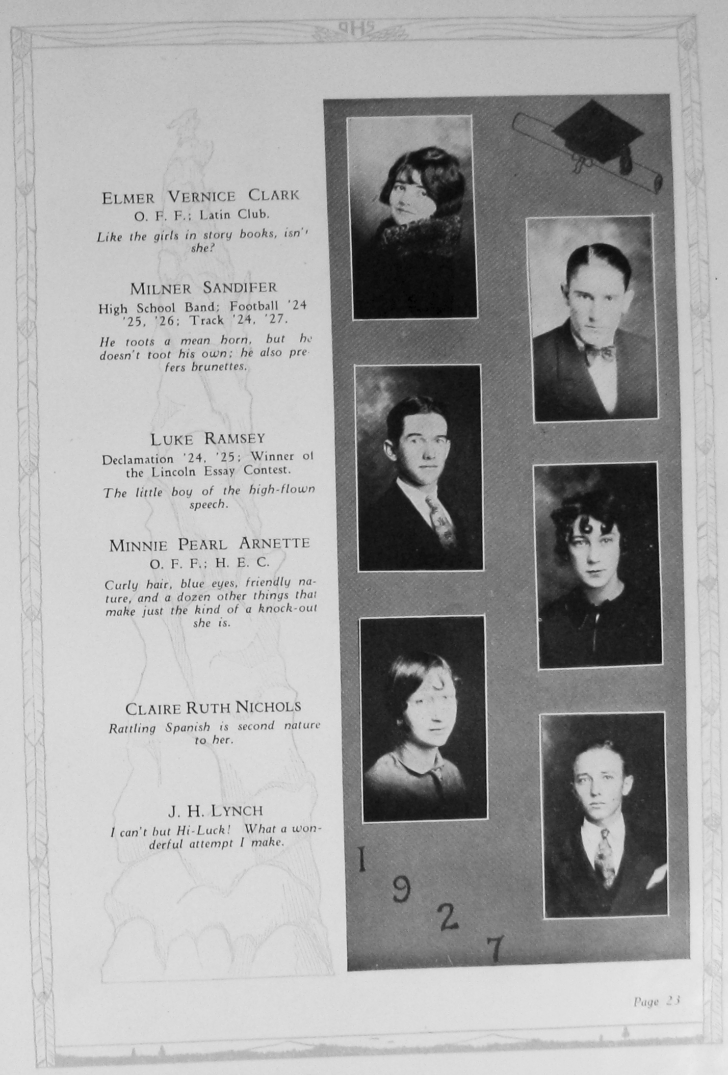 Sandifer, Milner 1927 DHS Senior Picture