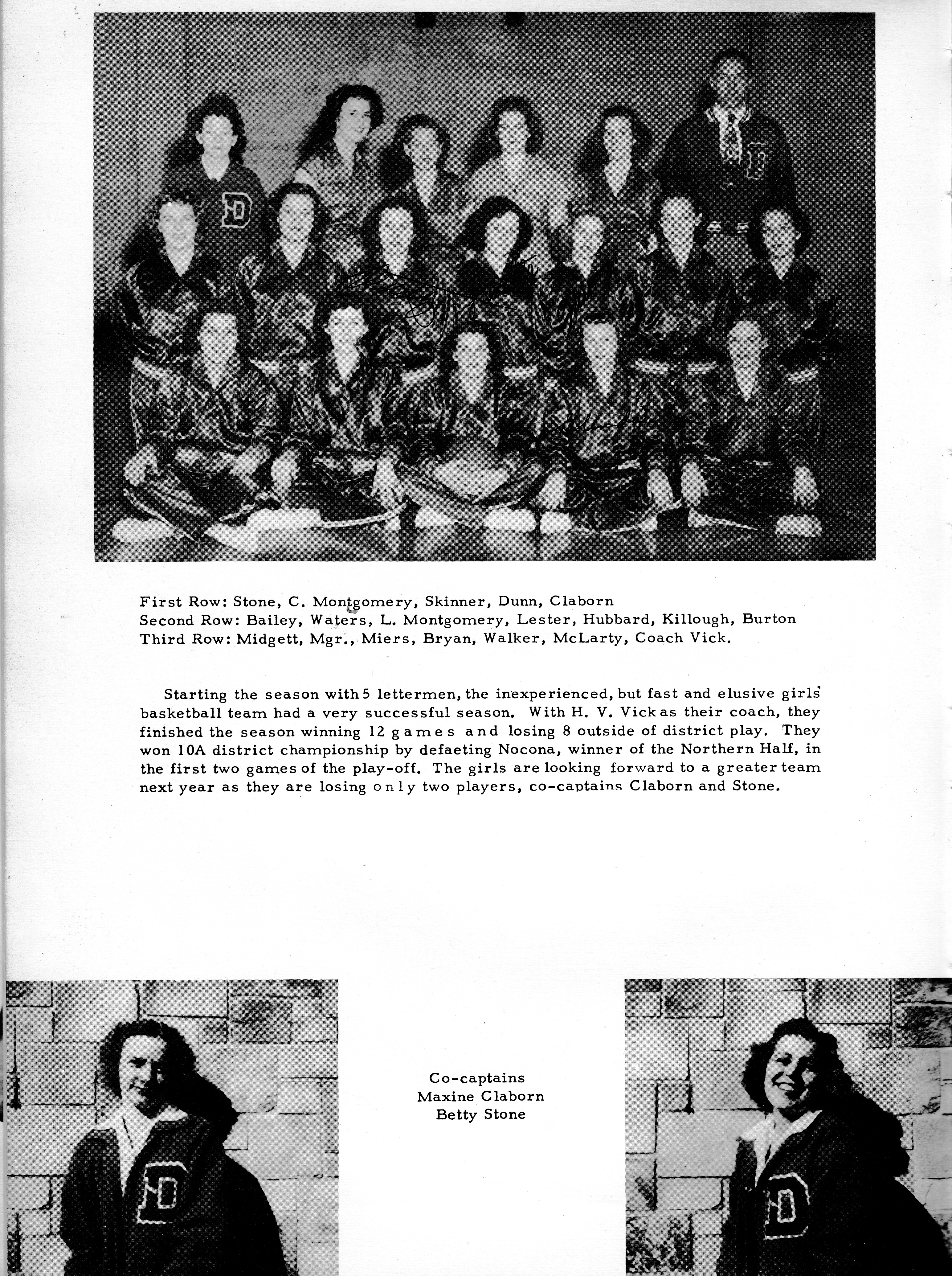 Sellars, Sally 1952 DHS Basketball Picture