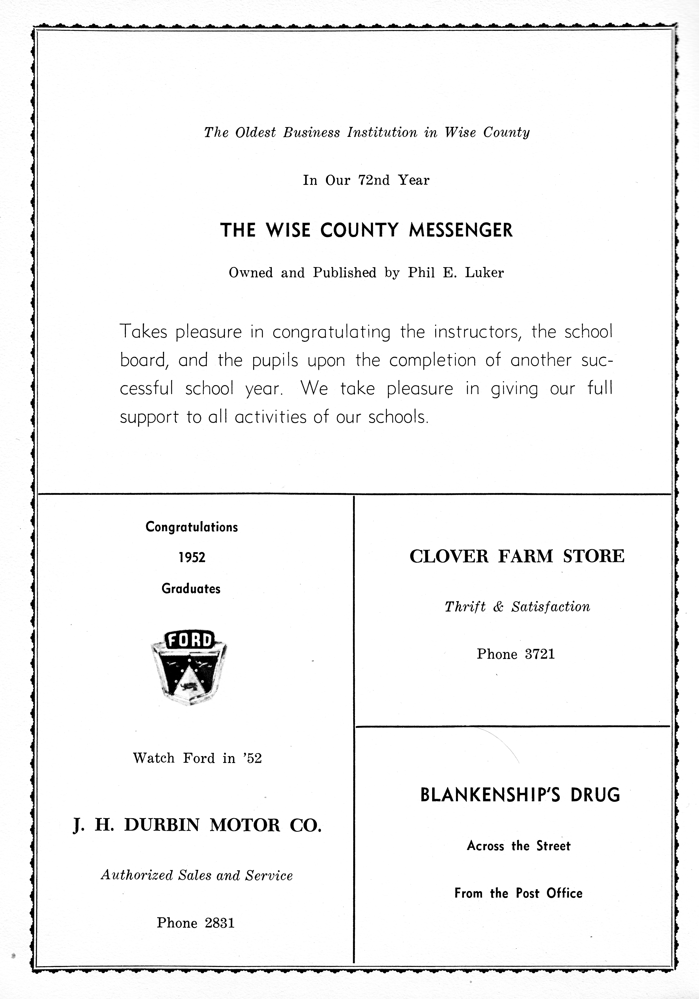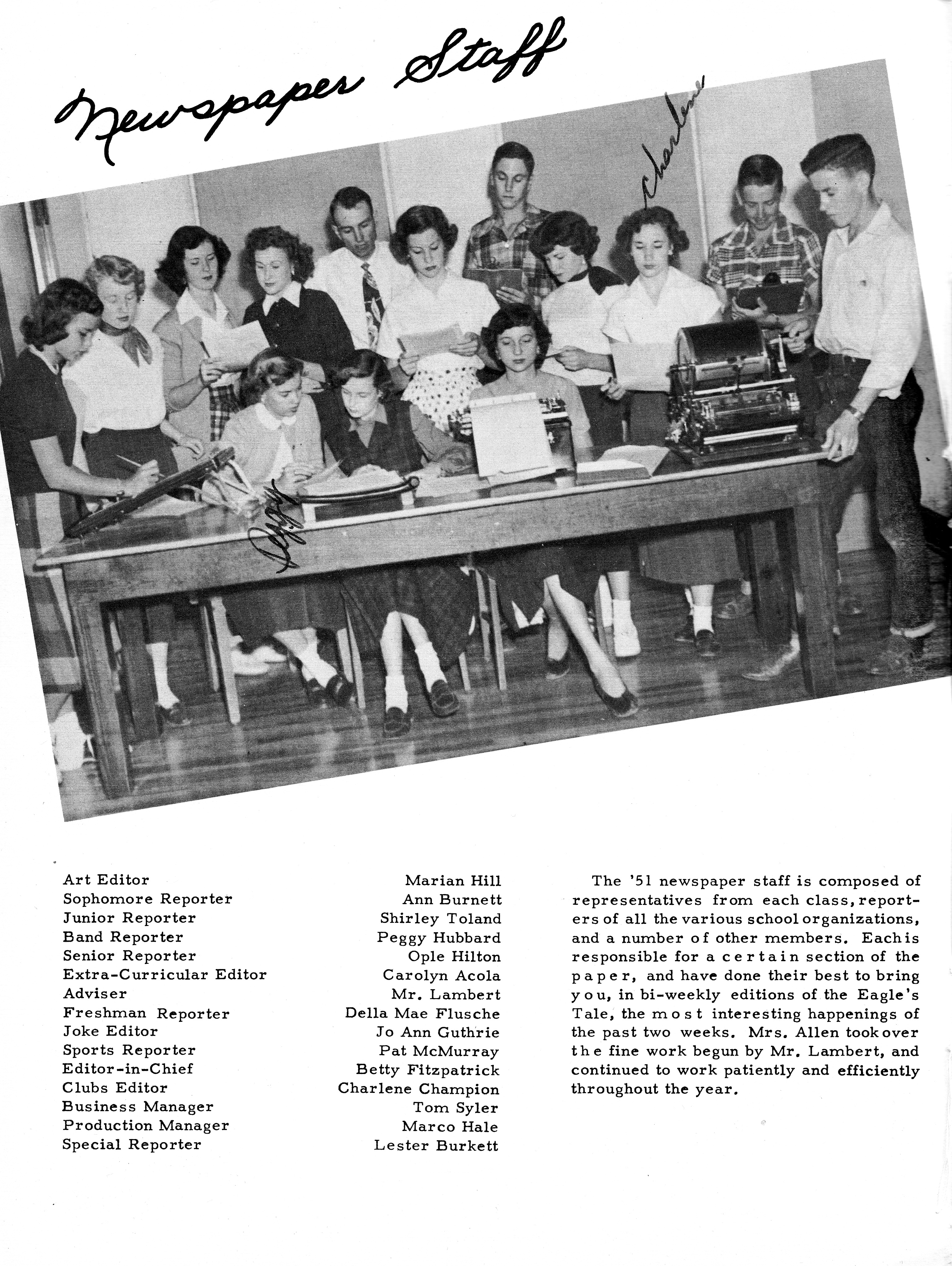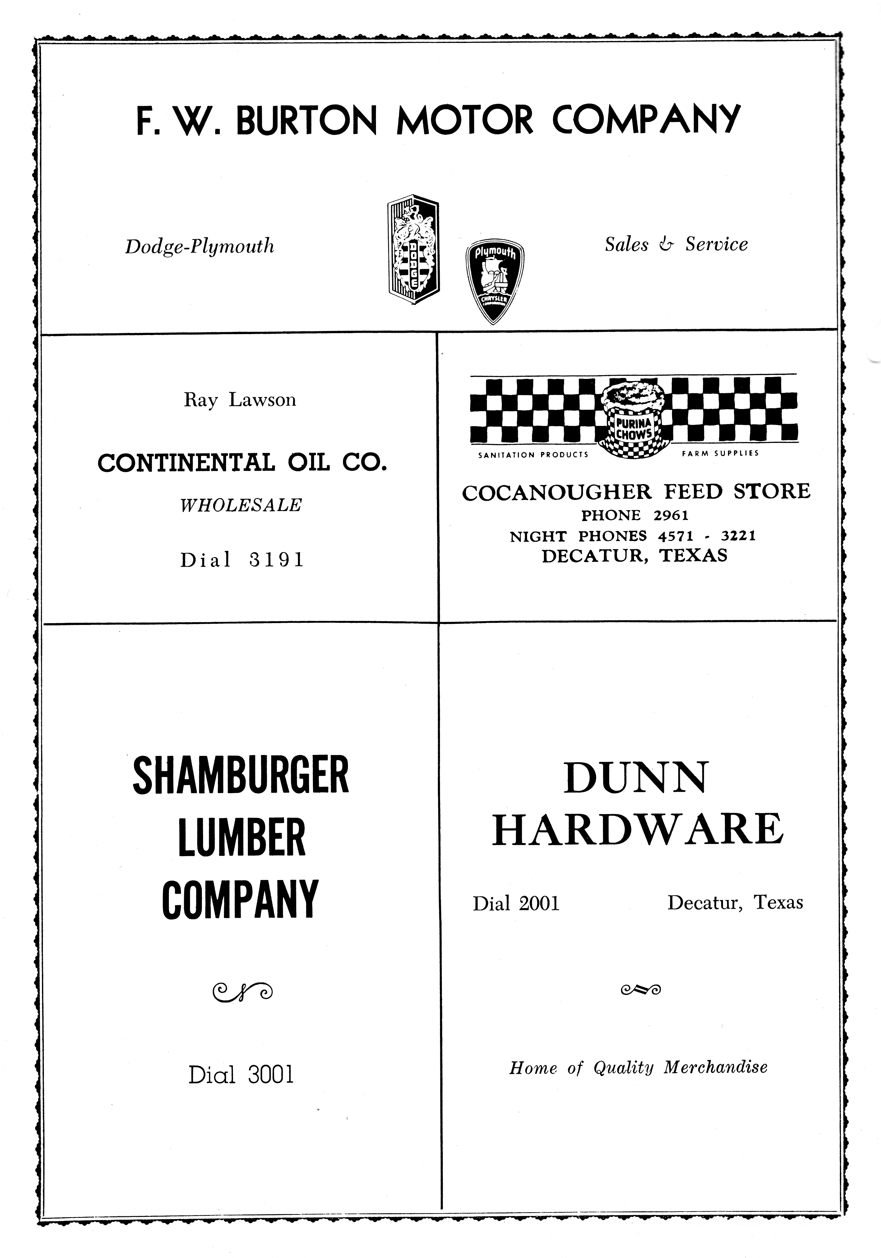 Shamburger Lumber Co 1951 DHS Advertisement