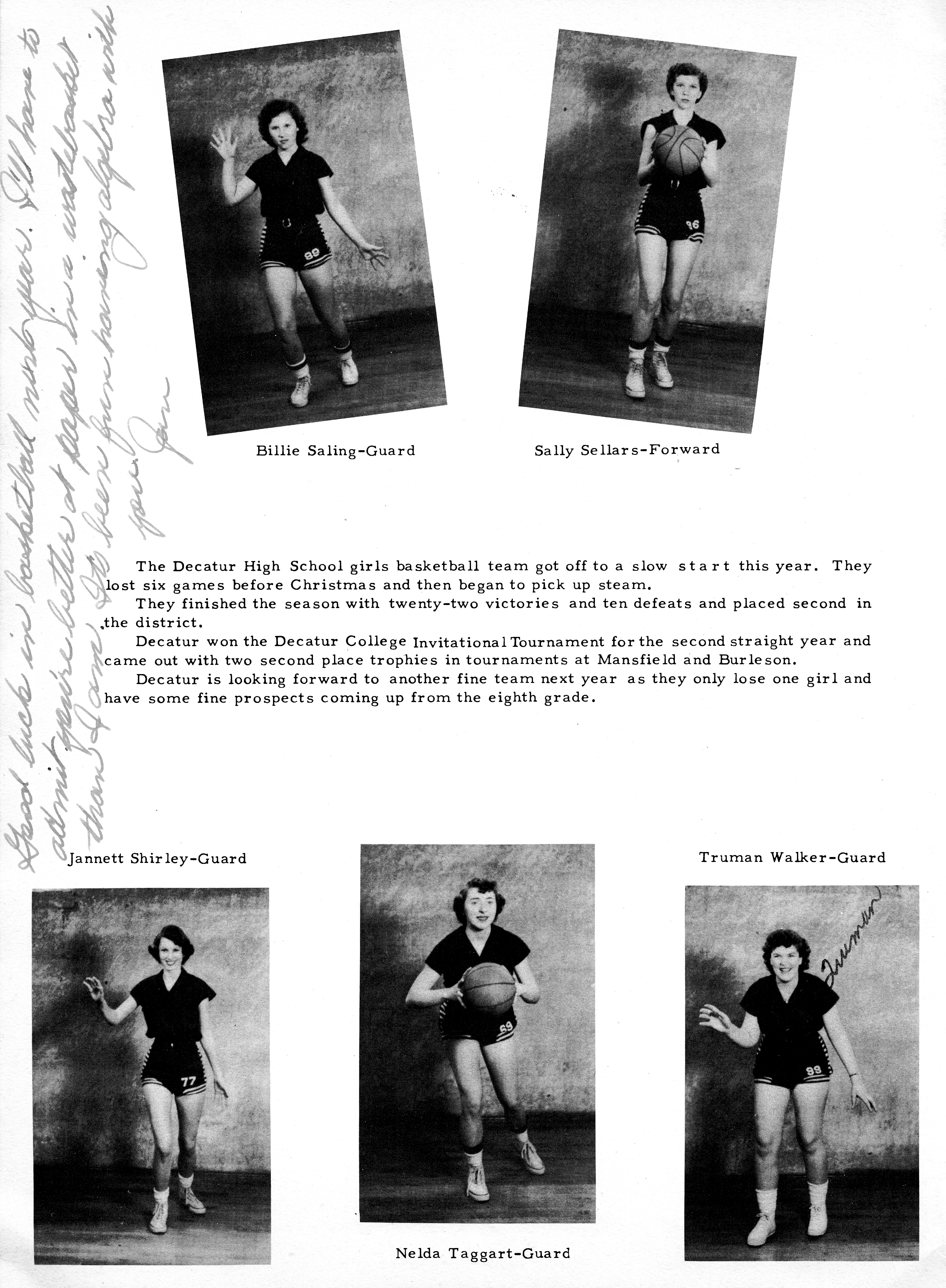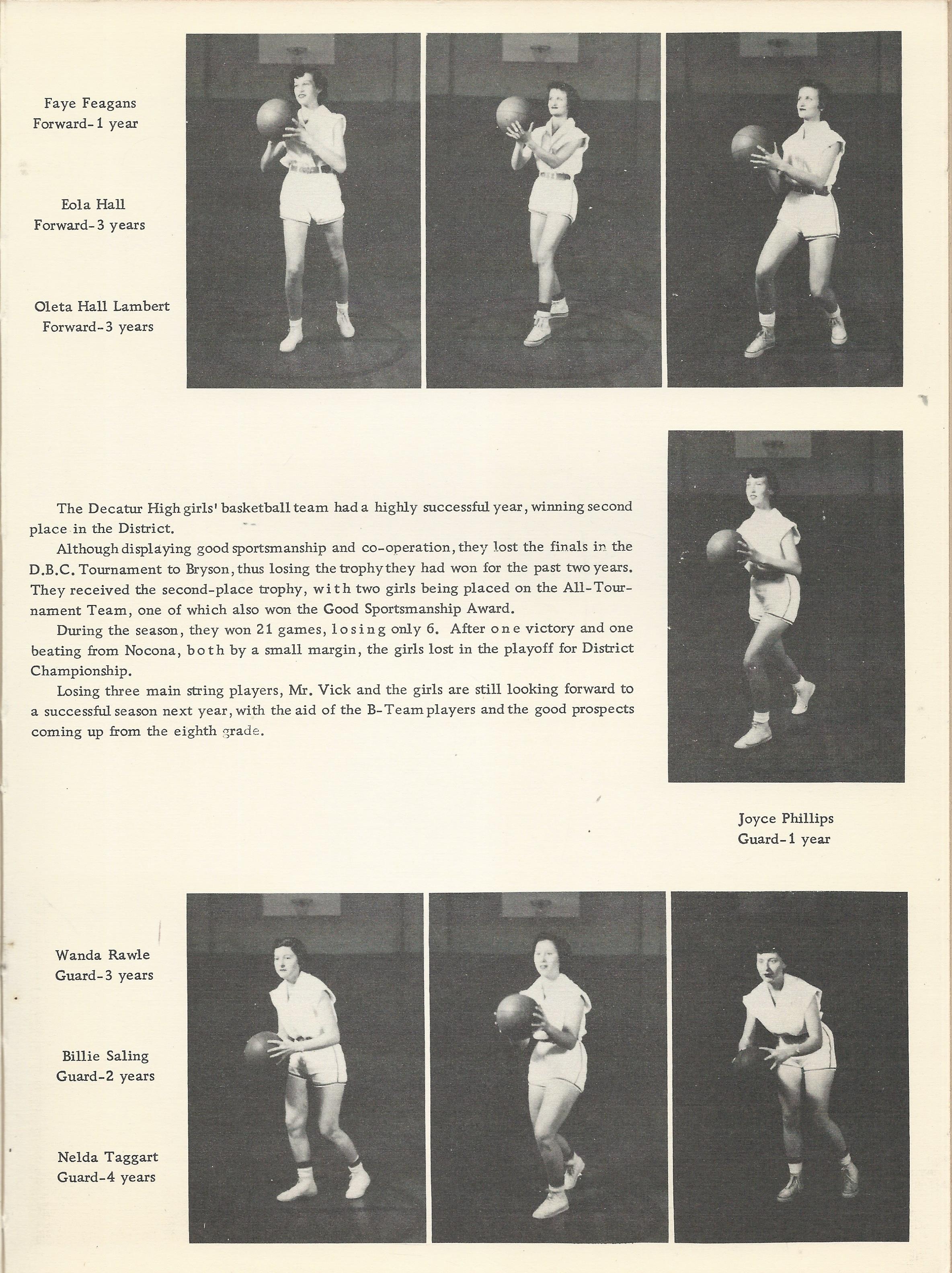 Sellars, Sally 1954 DHS Basketball Picture