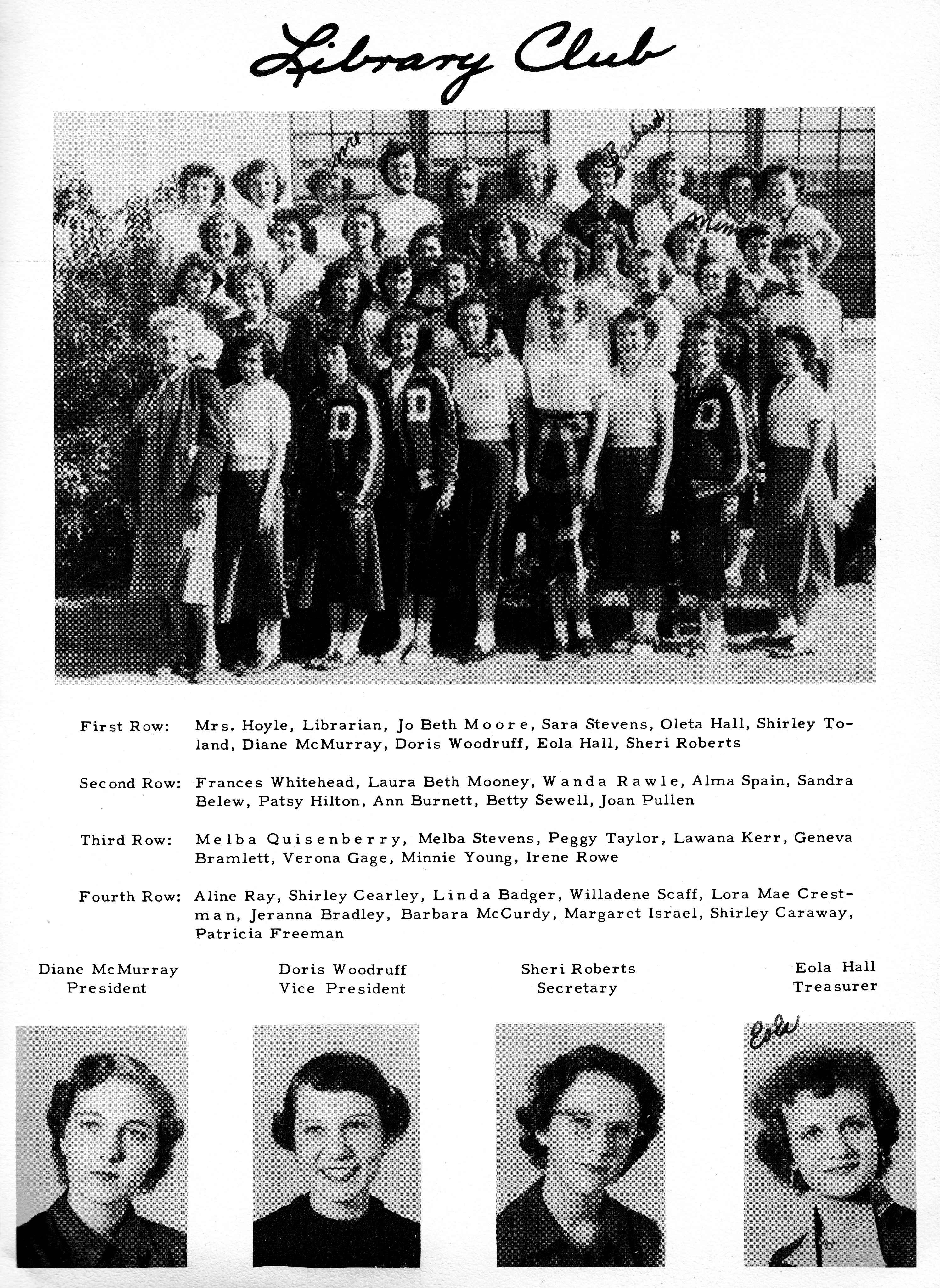 Sewell, Betty 1953 DHS Library Club Officer