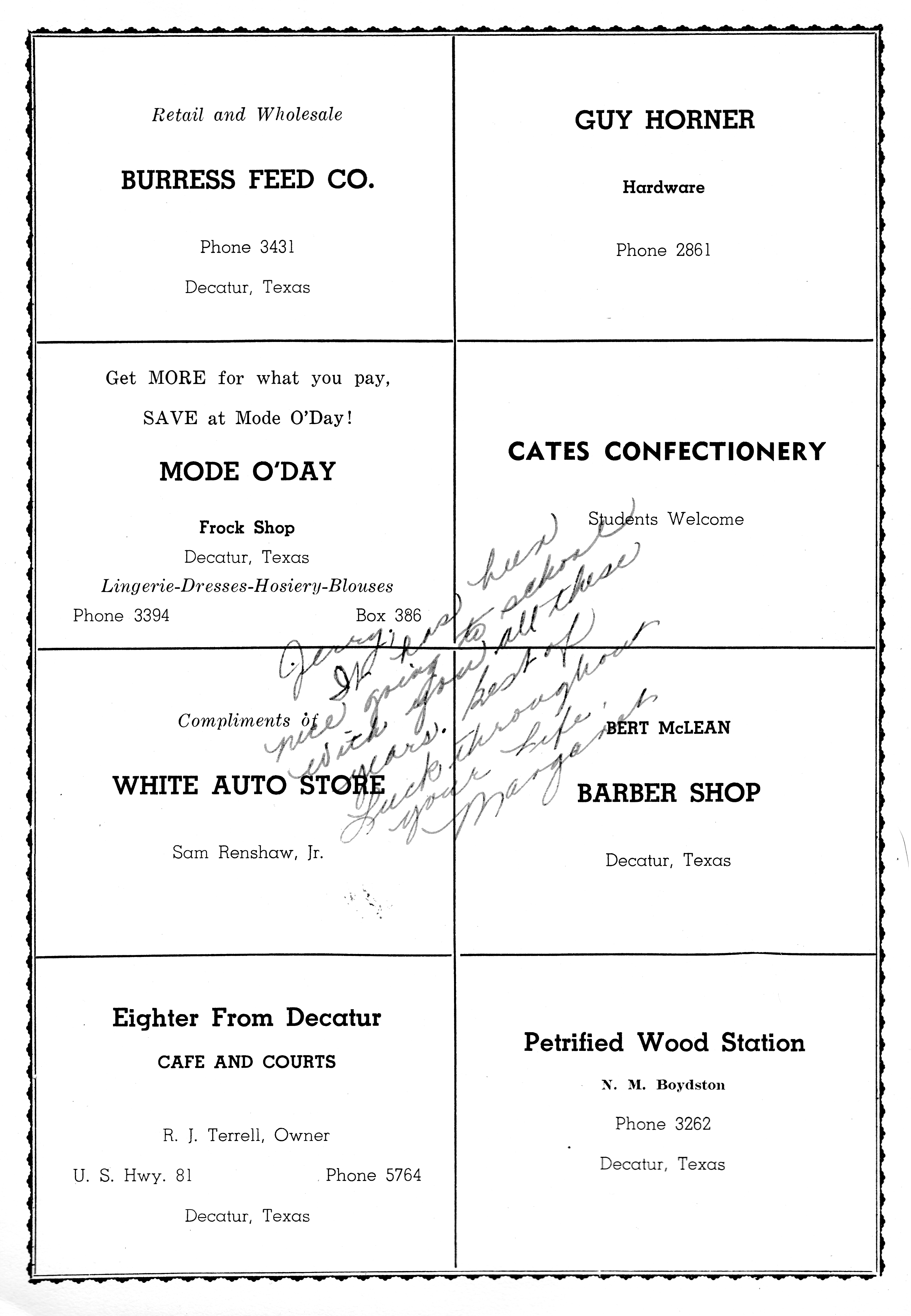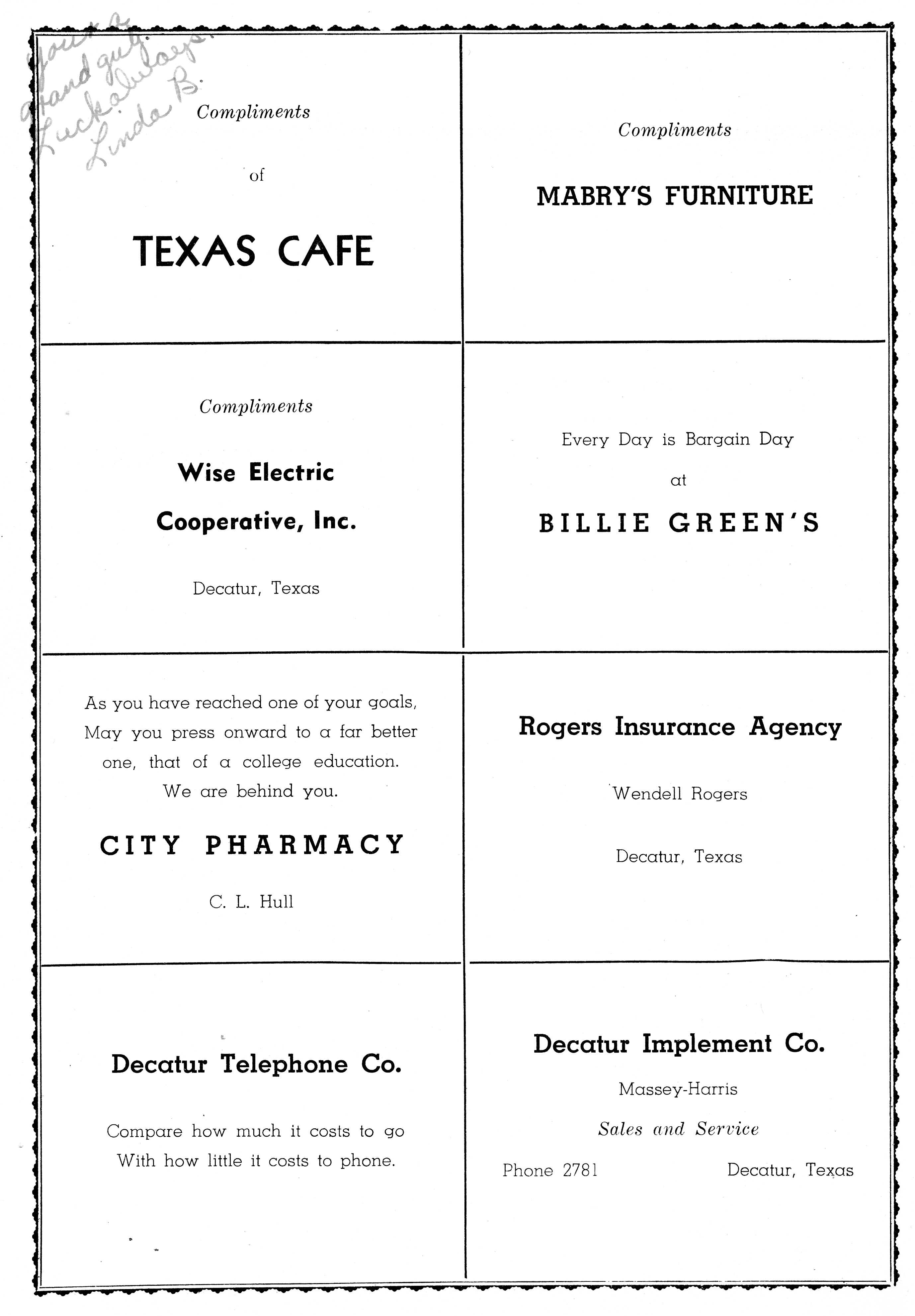 Shamburger Lumber Co 1950 DHS Advertisement