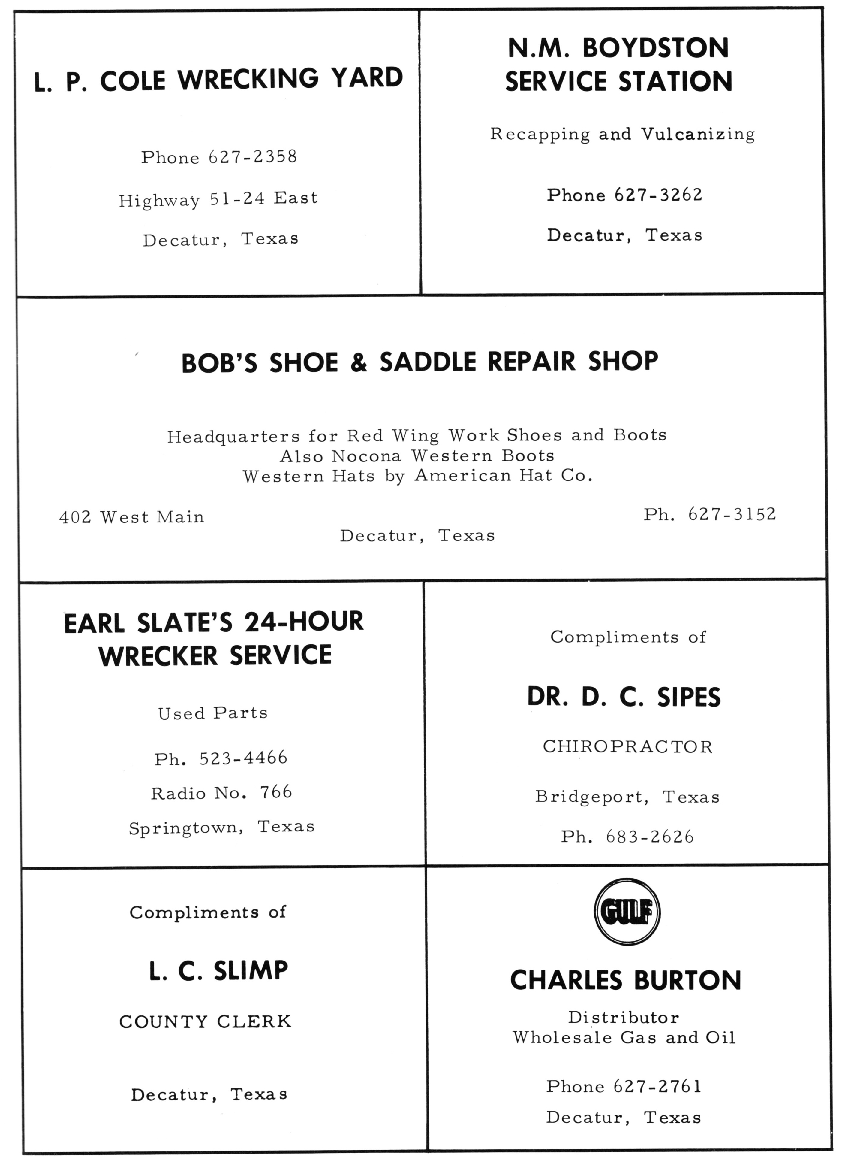 Burt McLean 1955 PHS Advertisement