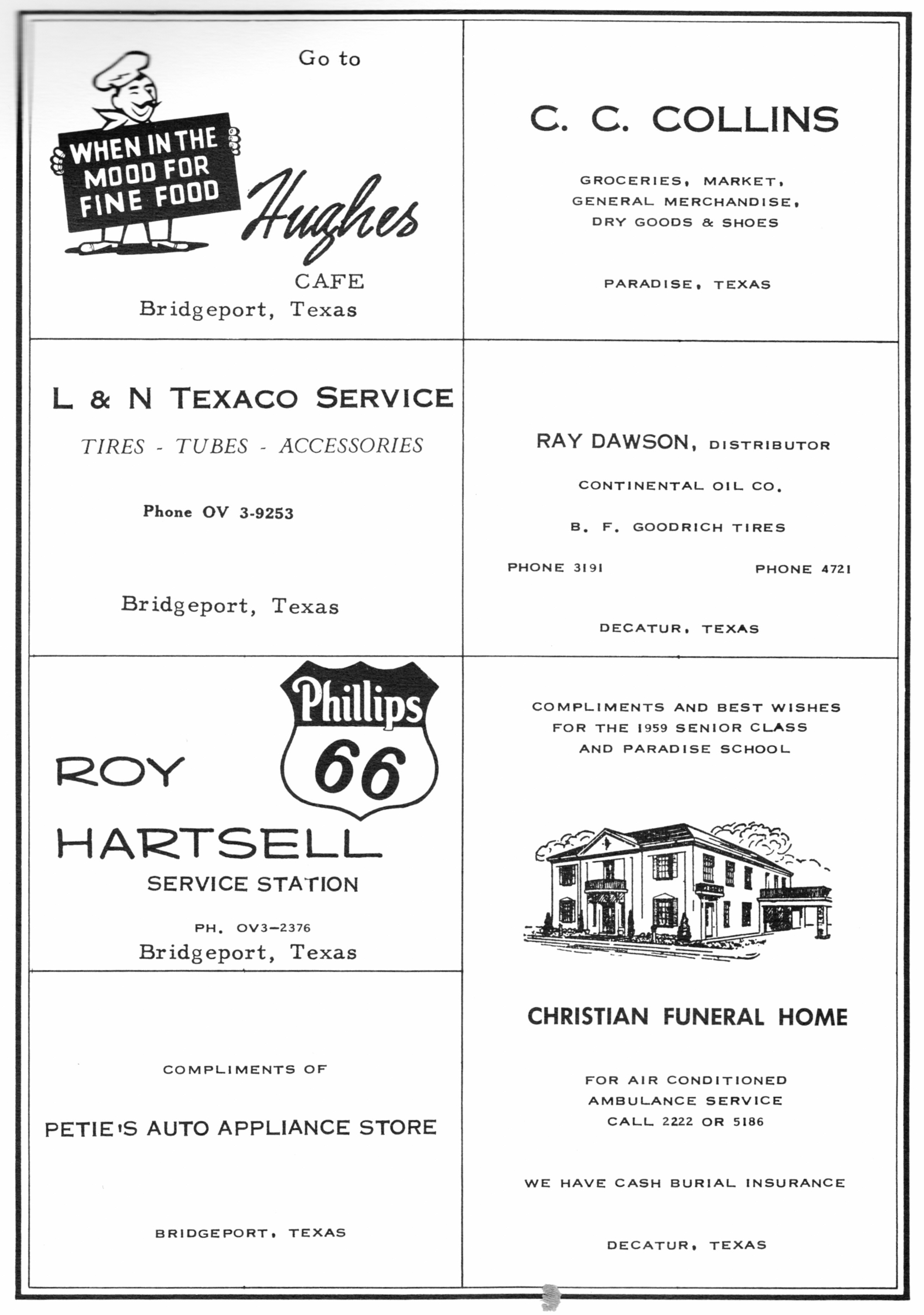 Collins Groceries 1959 PHS Advertisement