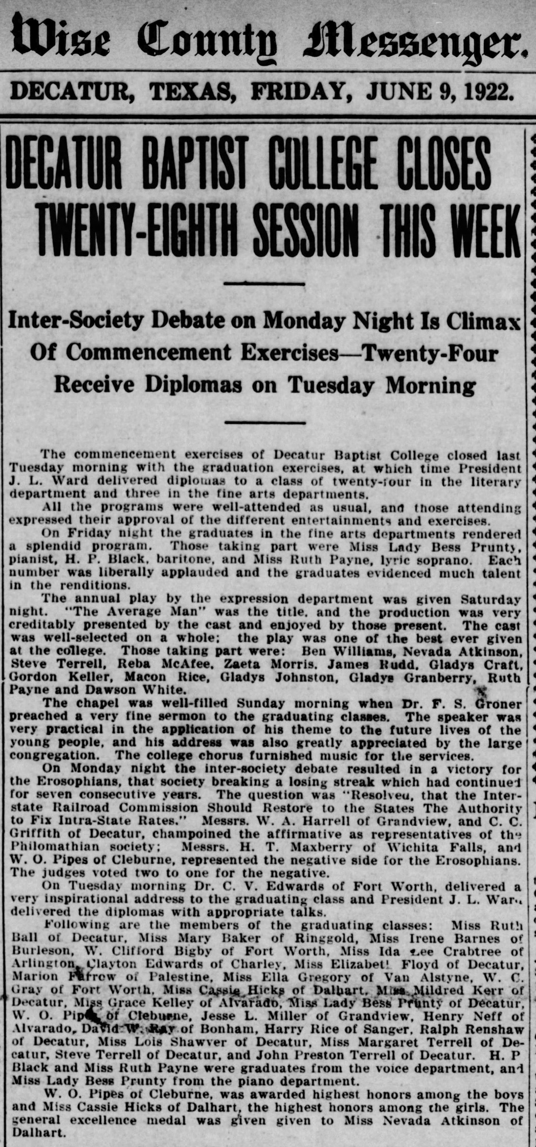 These articles give some information about the college during 1922 when we